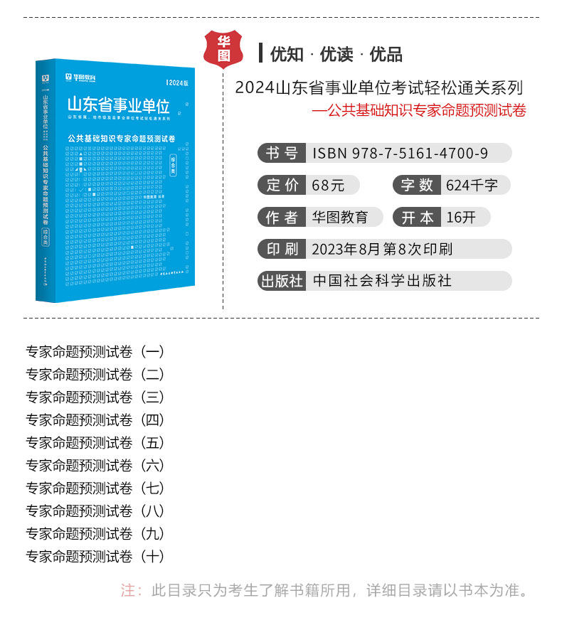 【华图图书教材】为您提供【书课包】2024山东事业单位【公共基础知识】教材+试题+预测卷+课程,更多最新山东事业单位图书考试网校课程及视频请关注华图图书教材!